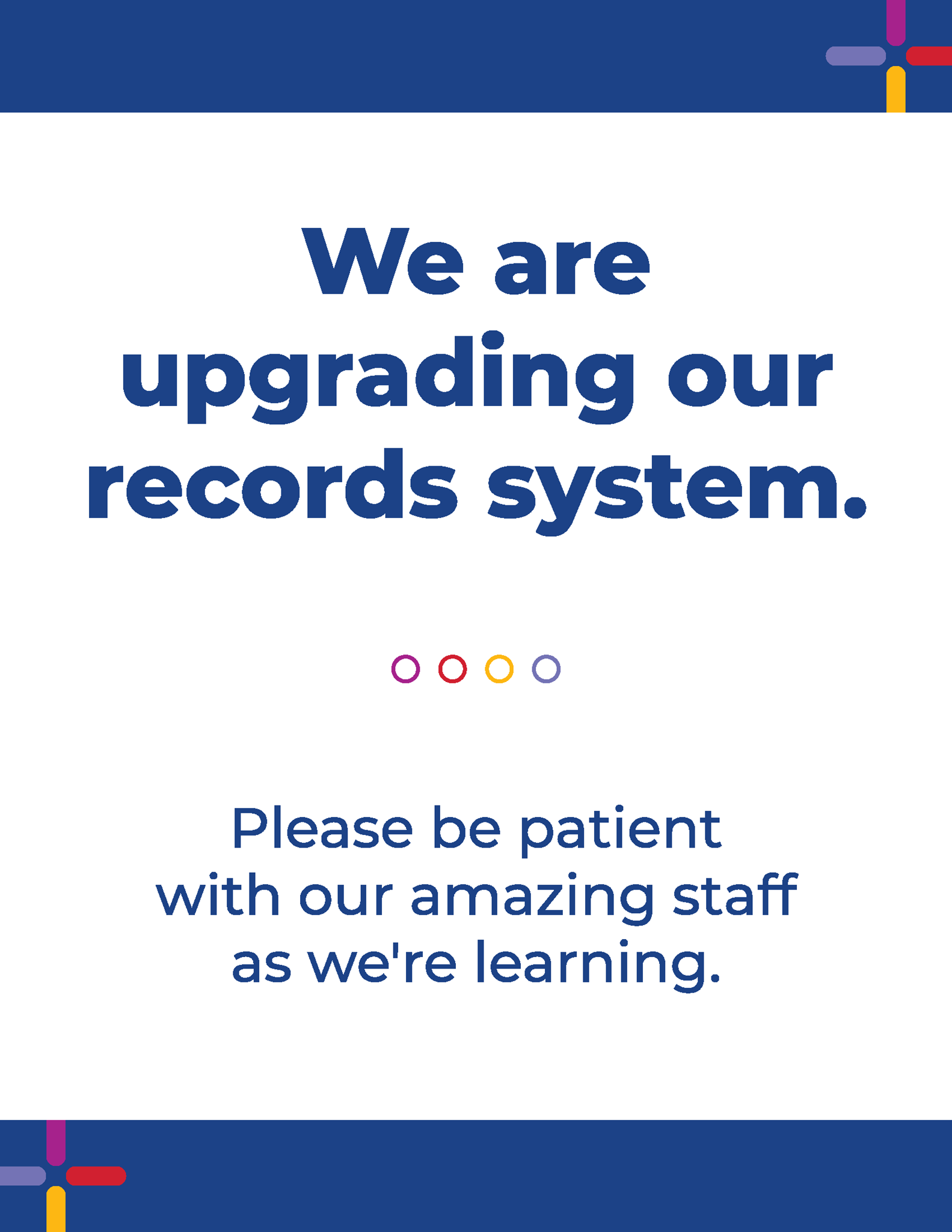 To be used by clinics at the new EMR program is rolled out. This order includes (2) 8.5 x 11 signs in (2) plastic acrylic sign holder stands. One sign is to be posted at reception and another at Nurse Station, visible to patients